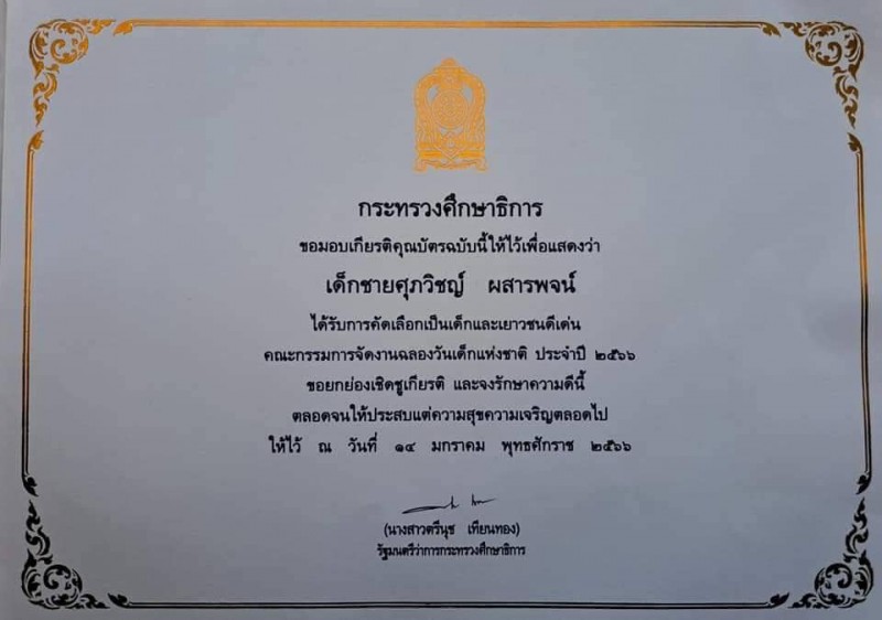 ขอแสดงความยินดีกับเด็กชายศุภวิชญ์ ผสารพจน์