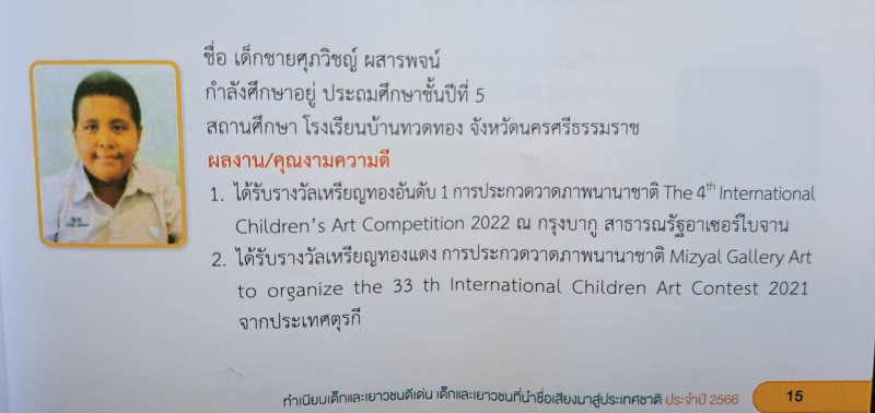 ขอแสดงความยินดีกับเด็กชายศุภวิชญ์ ผสารพจน์ นักเรียนโรงเรียนบ้านทวดทอง สพป.นศ. เขต 1
