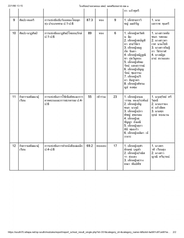 โรงเรียนบ้านทวดทอง เป็นตัวแทนเข้าร่วมการแข่งขัน จำนวนทั้งสิ้น 12 รายการ