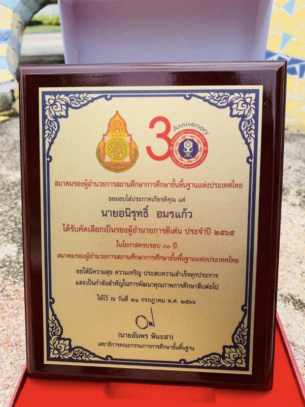 นายอนิรุทธิ์ อมรแก้ว รองผู้อำนวยการโรงเรียนบ้านทวดทอง รับรางวัลรองผู้อำนวยการโรงเรียนดีเด่นประจำปี 2565